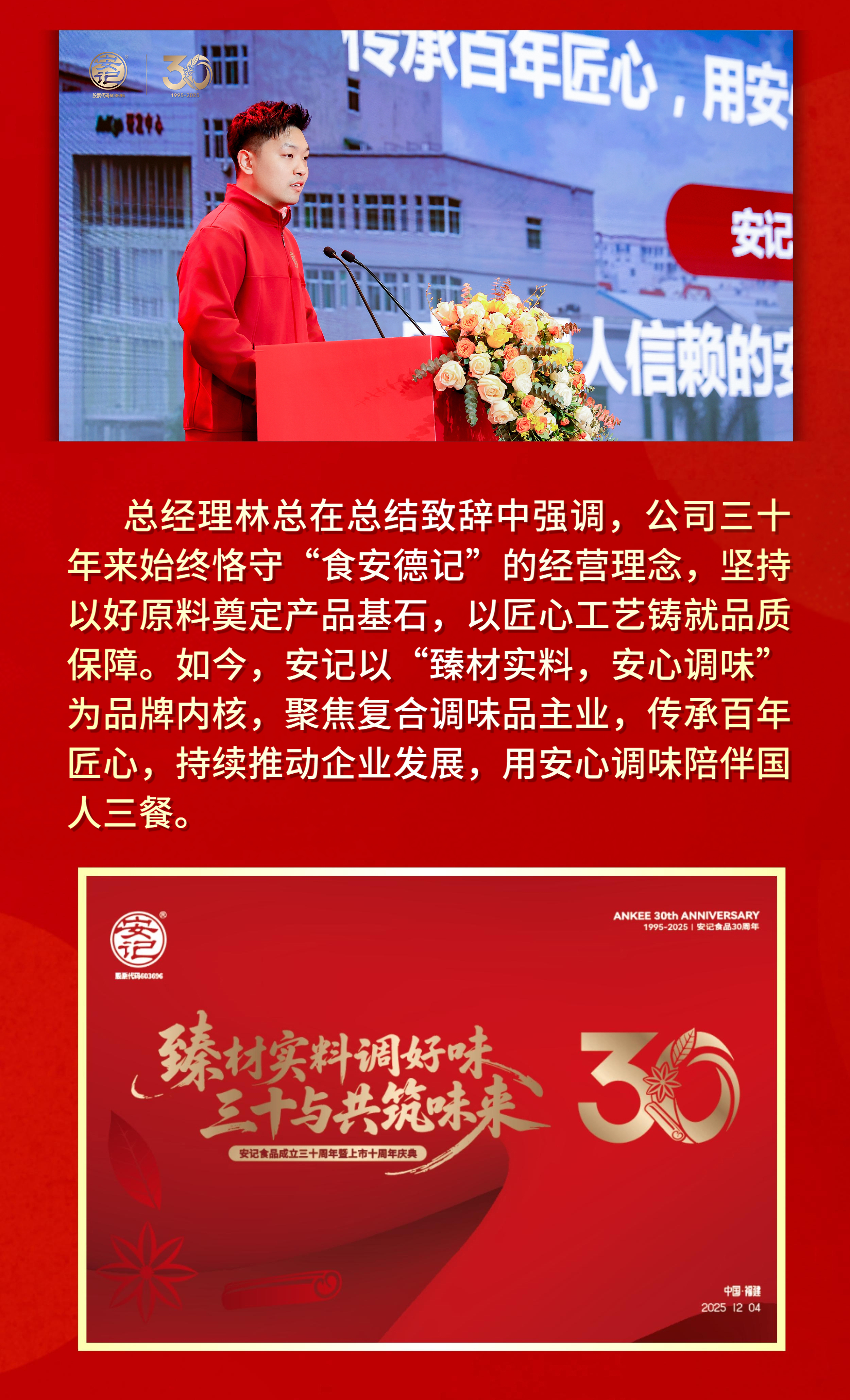 | “臻材實(shí)料調(diào)好味,三十與共筑味來(lái)”| 安記食品成立30周年暨上市十周年慶典圓滿(mǎn)成功 |